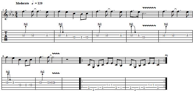 The next example is the classic rock riff almost everybody learns when they first pick up the guitar—“Smoke on the Water” by Deep Purple. It really doesn’t get much easier than this. No more than two note played at a time, with no acrobatics necessary. Try it. It sounds really cool and it’s one of those tunes that’s easily recognized.
