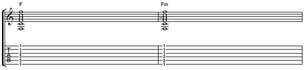 Again, notice that note, F, that’s common between all those chords. Be sure to click the link for the tab and we’ll see you in the next video. Thanks for watching.