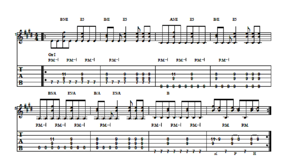 Then Robert strums the A chord three times, then picks the 6th string open and then places his pointer on the 2nd fret 6th string. Then you go up to the 7th fret 5th string and 9th fret 4th string to play a D5 power chord. Stumr it twice, then pause and then strum it three more times and then straight into the second part of this song, but we are not covering that part in today’s lesson.