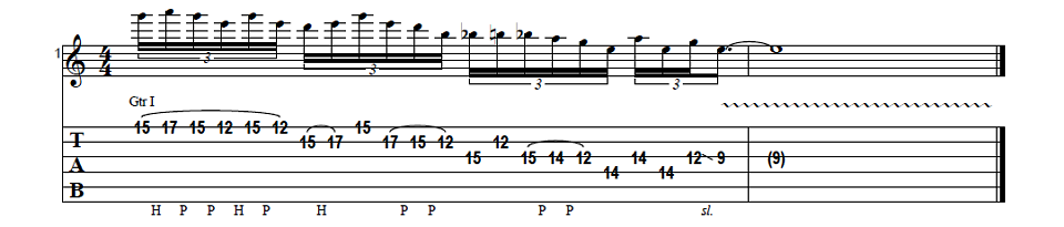 As you can see from the diagram, tab is laid out as if the guitar was in your hands and you were looking down on the fretboard. Each line represents a string. The top line is the high E, and the bottom line is the low E. The numbers on the lines represent the fret number, and the notes are played in succession, as if you were reading a book – one number follows the other.