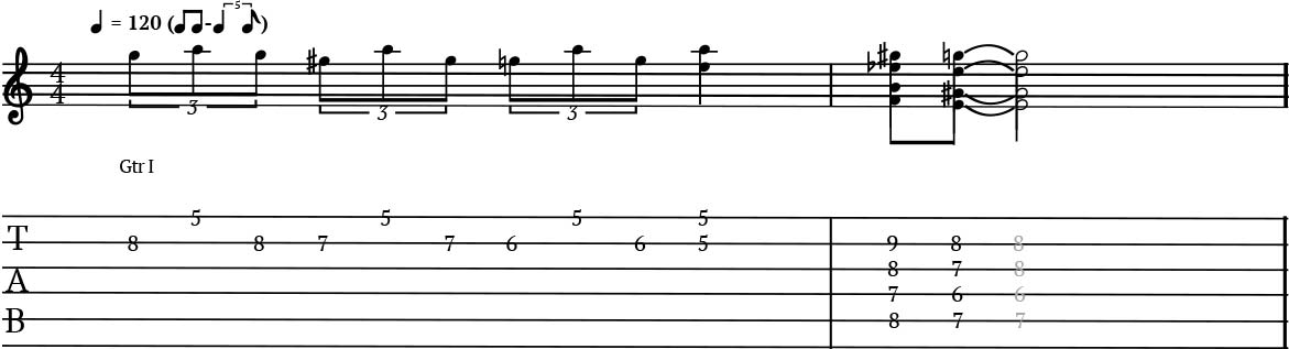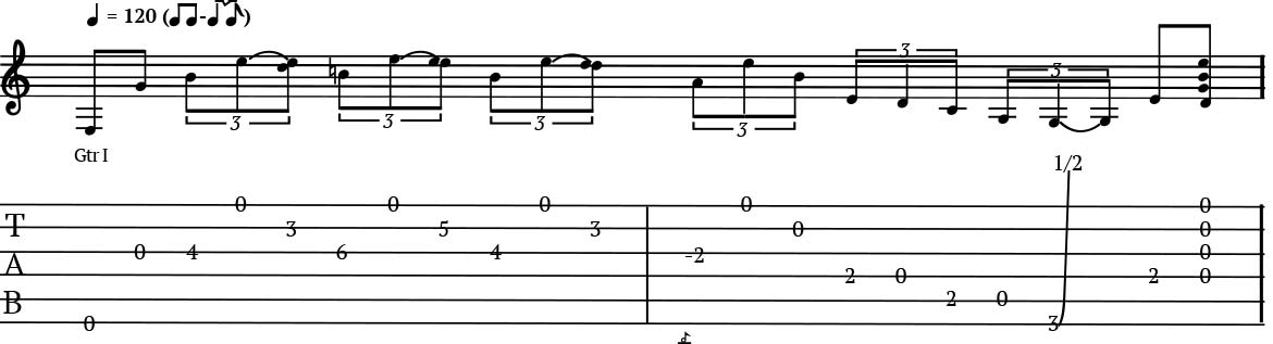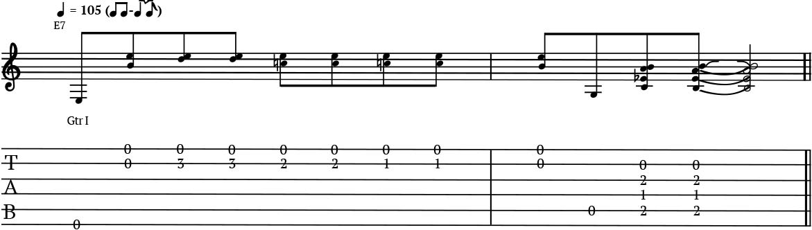 For example, modern stylists like Robben Ford will add more jazzy elements than a classic blues player like BB King. Here’s an example of a 2 bar turnaround in the key of E, and notice the use of open strings, triplet feel notes, as well as some bends.