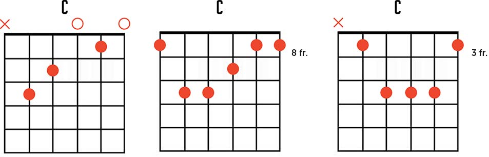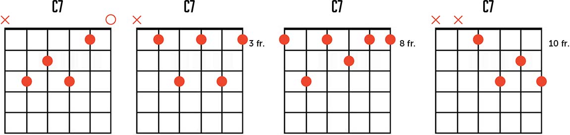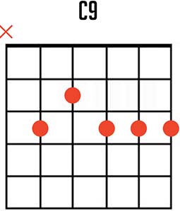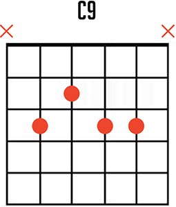 And here’s a couple of alternative chord voicings for the C Dom9 chord, which is usually just written as “C9”C9 Chord Chart