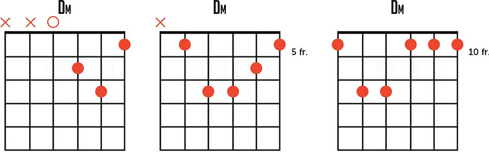 Jimi Hendrix popularized the use of the dominant #9 chord in songs like Purple Haze making it one of the best blues songs to learn if you want to learn how to play complete songs on guitar. You can also use it blues as a substitute for a dominant chord. You can see we did that here in the arrangement above. This chord contains the root, major 3rd, perfect 5th, minor 7th, and an augmented 9th. Here are some of the specific chord shapes (also called “voicings”) that you can play: