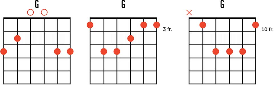 Major chords are the most commonly used chords of all. They are built from a root, a major 3rd, and a perfect 5th. You can play any basic “major” blues with these chords. Here’s an example of a blues in C major: major chords guitar Here are some specific chord shapes you can use for the C, the F, and the G: