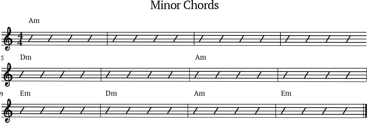 Next to major major chords, minor chords are the most common. They are built by a root, a minor 3rd, and a perfect 5th. The only difference between the minor chord and the major chord is the 3rd…and of course, we can find these in minor blues progressions. As discussed, there are many variations for minor blues progressions. This example in the key of A minor uses all minor chords: Minor Blues Chords And here are some of the specific chord voicings you can use for the Am, Dm, and Em chords: