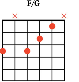 Press all string down with your index finger (barre) on 1st fret, major on 3rd string, 2nd fret, ring finger on 5th string, 3rd fret and your pinky on 4th string, 3rd fret. F is one of the most difficult guitar chords to play for any beginner. And that’s because F is in the category of barre chords. As I just said, bar or barre chords are the most difficult ones to play for the beginners. To play these chords you need to use one finger to press, usually, all the strings down on one fret. Then, with the rest of the fingers, you will commonly play an open chord shape. So there are several ways to play an F chord, but the most common way is the one in the first fret. There’s a cool way to understand barre chords, so imagine that your bar finger plays the role of the nut (the plastic piece, where the strings rest, that is placed where the head and the neck of the guitar joins). So imagine that you are moving the nut all along the fretboard. The idea is to be able to play open chords shapes everywhere on the neck. So this F chord, will have the same chord shape than an E major chord, but one fret up. But you can’t move the nut, so you have to do the bar with your first finger (index finger) So how do you play an F bar chord on guitar? Here’s the finger positions: 1st finger (index) barre on first fret. 2nd finger (major) on the third string, second fret. 3rd finger (ring) on the fifth string, third fret. 4th finger (pinky) on the fourth string, third fret. It’s really important that you don’t mute the strings that you are not supposed to press down, the idea is to get the cleanest sound you can.
