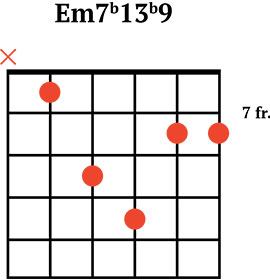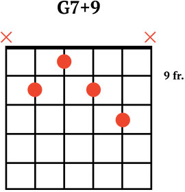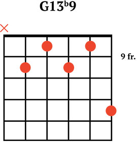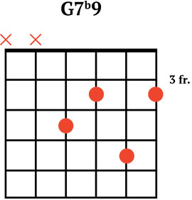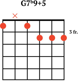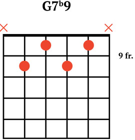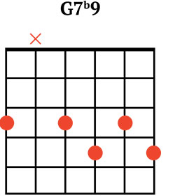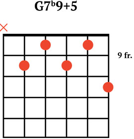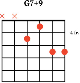 G7#9 : (G B D F A# – this chord is also known as the Hendrix chord).
