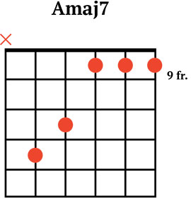 A A# B C C# D D# E F F# G G#: 0 1 2 3 4 5 6 7 8 9 10 11 A Bb B C Db D Eb E F Gb G Ab 0 1 2 3 4 5 6 7 8 9 10 11 So since we already know that the note is G, no matter if it´s # or b we can see that our major 7th for the A Major chord is G#. So A major 7th (Amaj7) has these notes: A C# E G#.
