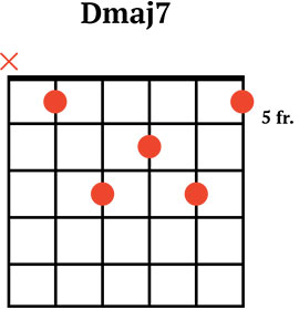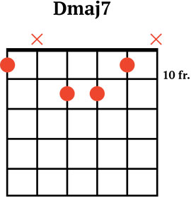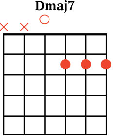 Let’s see a few more examples: D major 7th (Dmaj7). Earlier we found the major triad (D F# A), so now let’s find the major 7th.