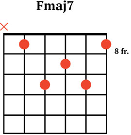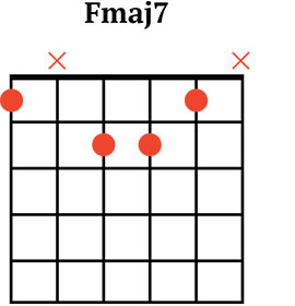 Earlier we checked the notes for F7, now let´s find the major 7th (Fmaj7)