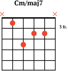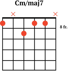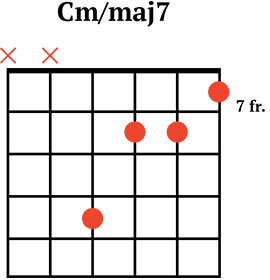 Minor/Major 7th chords will have: Root, minor 3rd, perfect fifth and major 7th) Ex: C minor/major 7th (Cm/maj7): C, Eb, G, B
