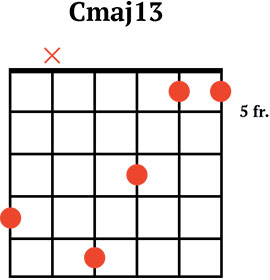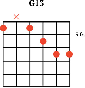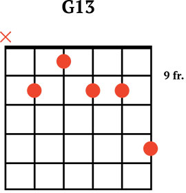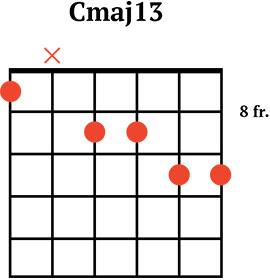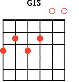 (Usually it´s impossible to play all the 7 notes. For 13th chords it’s common to omit the 5th, the 9th and 11th; especially for guitar since we only have 4 fingers).