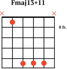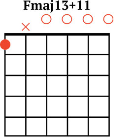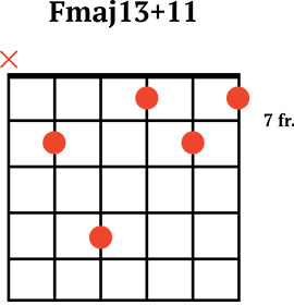 Fmaj13#11 (From F to B there’s an augmented 4th or 11th, so we will have a #11)