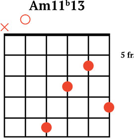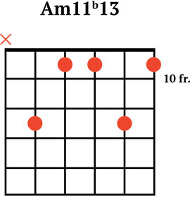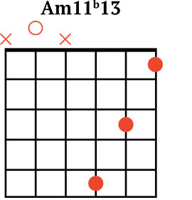 = Am11b13 (From A to F, there´s minor 6th or 13th so we will have a b13th)