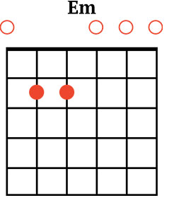 The first step is learning most basic open chords, like E minor. Playing chords on guitar is one of the first things that any beginner should start with. There are thousands of chords, but you should start with the most simple ones. And those are called open chords. That means that they will have one or more open strings. So how do you play the chords on a guitar? The first you need to know is the name of the strings. Starting from the thinnest, their names are: 1st string: E (high E) 2nd string:B 3rd string: G 4th string: D 5th string: A 6th string: E (low E) So once you know the name of the strings, next step is to put your fingers on the strings in the right fret. The frets are those metal bars that are placed on the fret board. If you are learning the basic chords, you will be playing in the first 3 or 4 frets. The first fret is the one that follows the nut (the nut is the plastic piece where the strings rest from the tuning machines to the neck) Another important thing is to know how to call each fingers. We will call them with numbers: Number 1: Index finger Number 2: Major finger Number 3: Ring finger Number 4: Pinky finger Another thing I recommend you is to learn how to read chord charts. That will help you to read all the chords you want to learn.