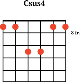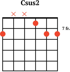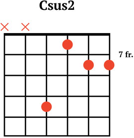 Suspended chords are those ones that replaces the 3rd for a perfect 4th or major 2nd. A suspended guitar chord is a pretty common chord which you can find in most of the songs. Especially the suspended 4 chord. There could be also suspended 2, but not too often. So What is a suspended chord? A suspended chord is a bit different from the basic major or minor chord. The difference is that they don’t have the third. This is omitted by a perfect fourth or major second. For example, a C suspended 4 will have the following notes: C, F and G – the way of writing it is: Csus4 And a C suspended 2 will have: C, D and G. = Csus2 The characteristic of these kind of chords is their open sound which creates some tension, because of the dissonance between the 4th and the 5th and the 2nd with the root or tonic.